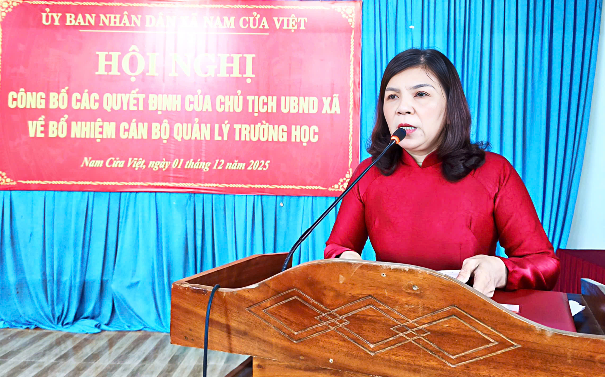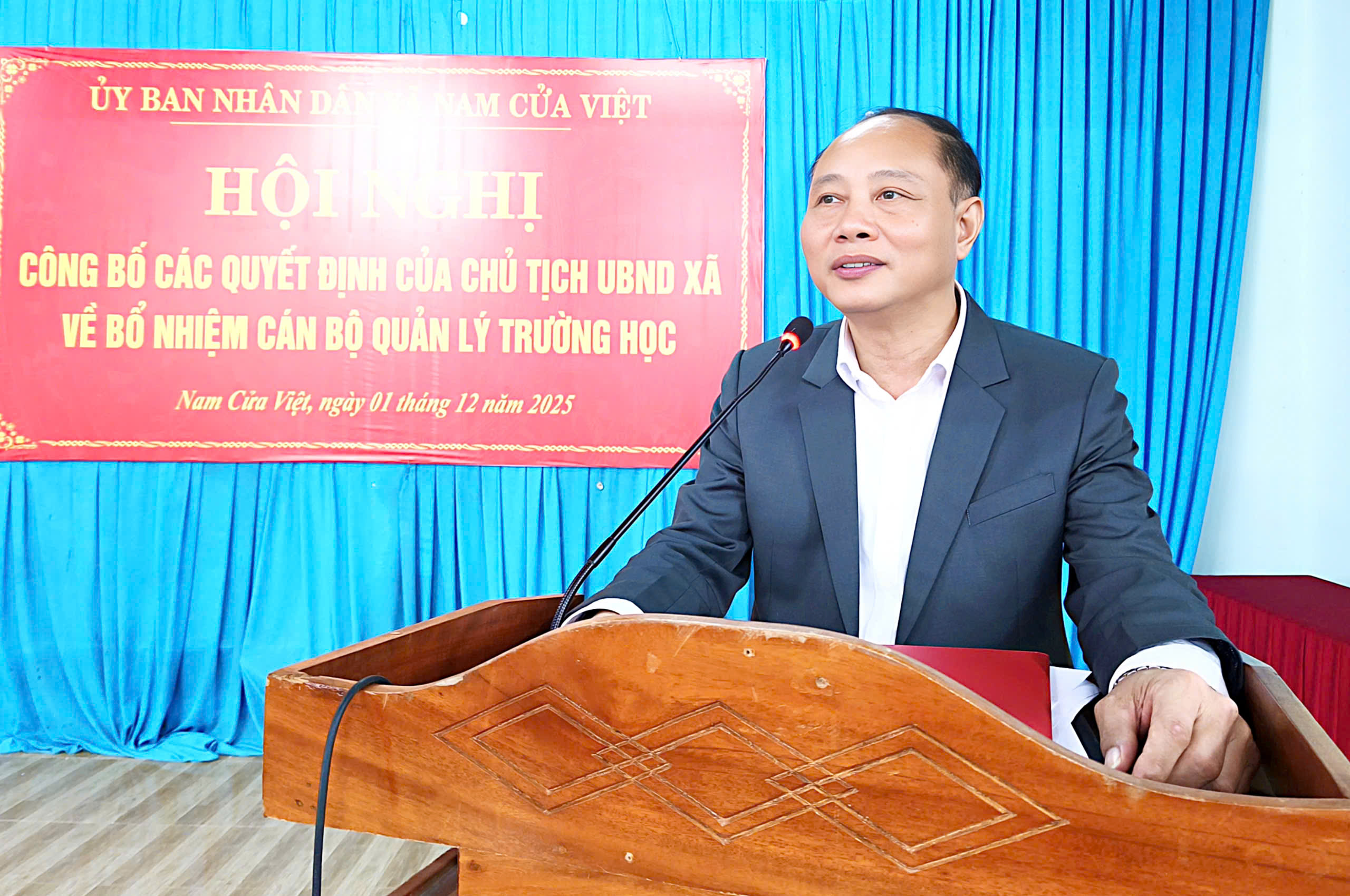 Chiều 01/12/2025, UBND xã Nam Cửa Việt tổ chức Hội nghị công bố các quyết định của Chủ tịch UBND xã về công tác bổ nhiệm và bổ nhiệm lại cán bộ quản lý tại các trường học trên địa bàn.