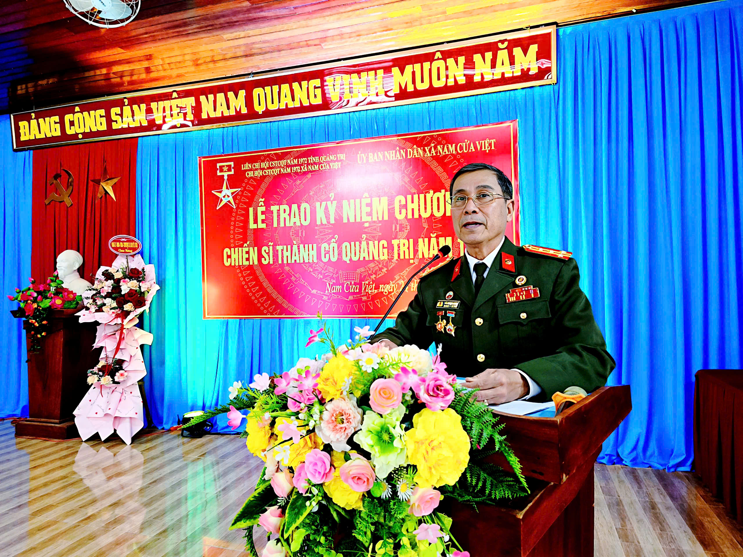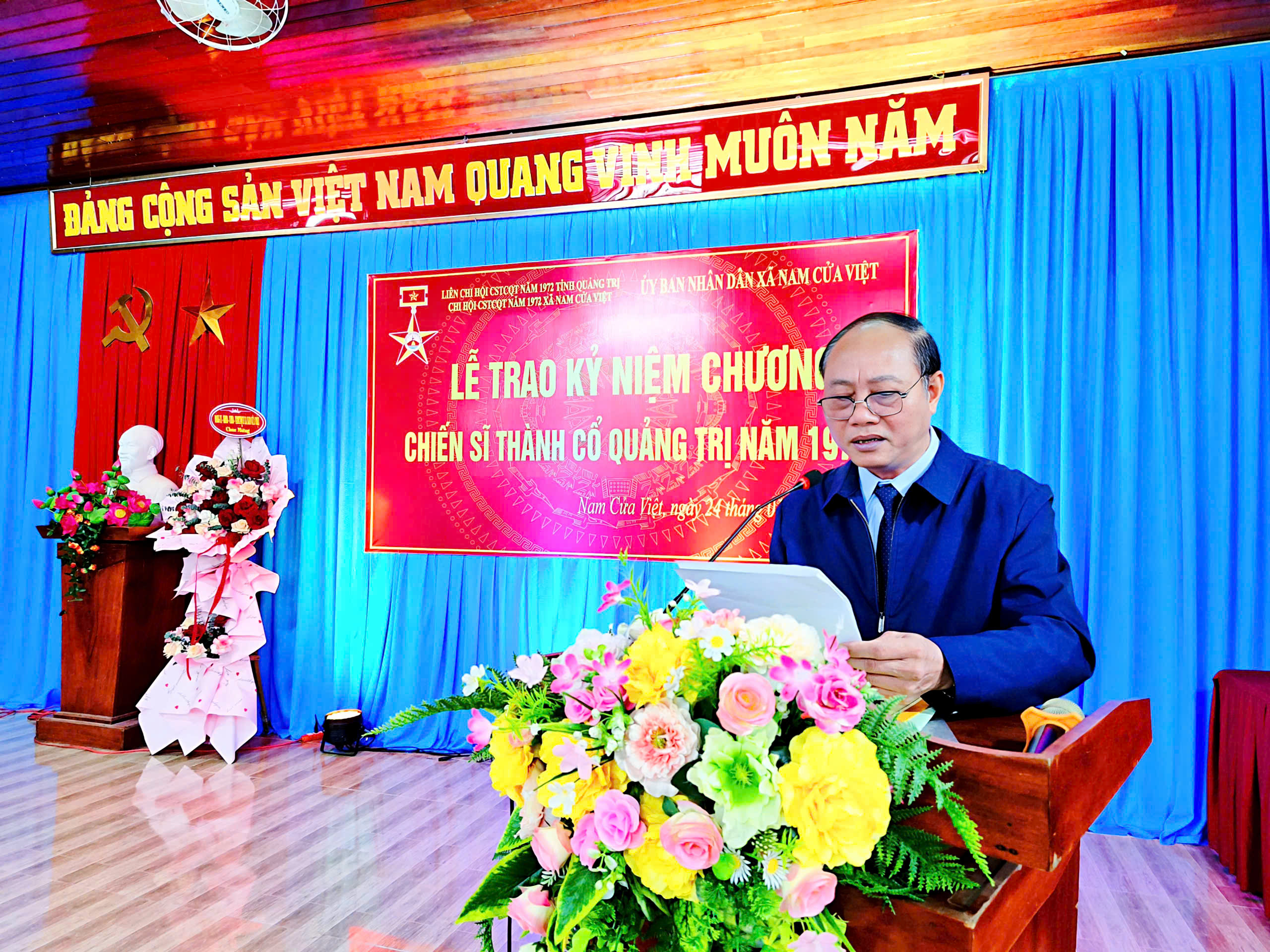Phát biểu tại buổi lễ, đồng chí Trần Việt Dũng – Phó Bí thư Đảng ủy, Chủ tịch UBND xã bày tỏ sự tri ân sâu sắc trước những cống hiến, hy sinh to lớn của các Chiến sĩ Thành Cổ Quảng Trị năm 1972. Đồng chí mong muốn các hội viên tiếp tục phát huy truyền thống anh hùng cách mạng, phẩm chất Bộ đội Cụ Hồ, trở thành tấm gương sáng cho thế hệ trẻ học tập, noi theo; đồng thời xây dựng và phát triển Chi hội ngày càng vững mạnh, góp phần xây dựng quê hương Nam Cửa Việt ngày càng giàu đẹp, văn minh.